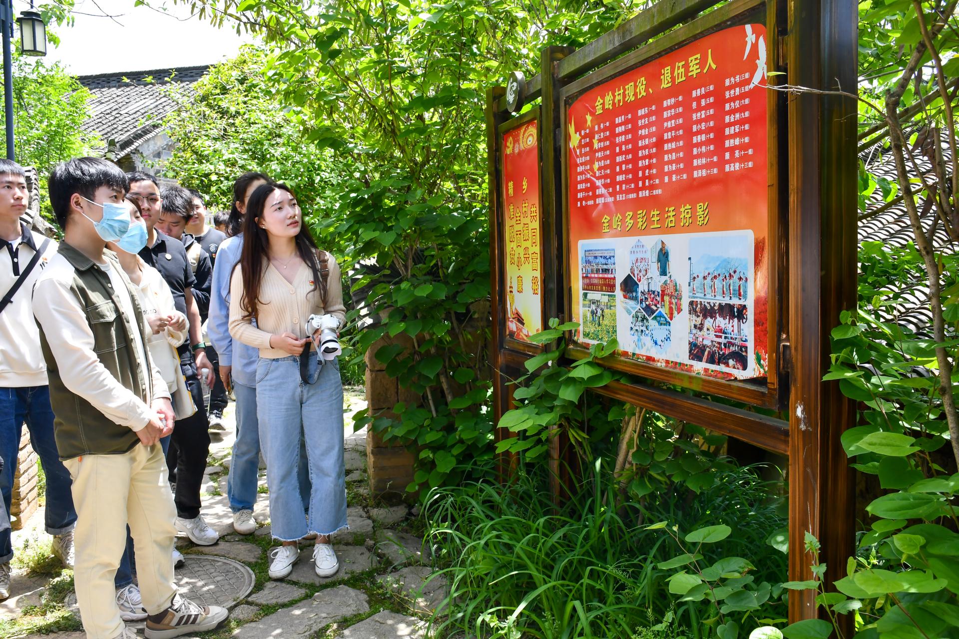 跟随讲解员的步伐,师生们依次参观了金岭村的党建大院、积分超市、红色记忆小屋、农耕文化园、致富工坊、同心楼等,充分领略了以产业为核心打造的“实力金岭”、以人才为支撑打造的“智慧金岭”、以文化为纽带打造的“古色金岭”和以组织为保障打造的“幸福金岭”的魅力。