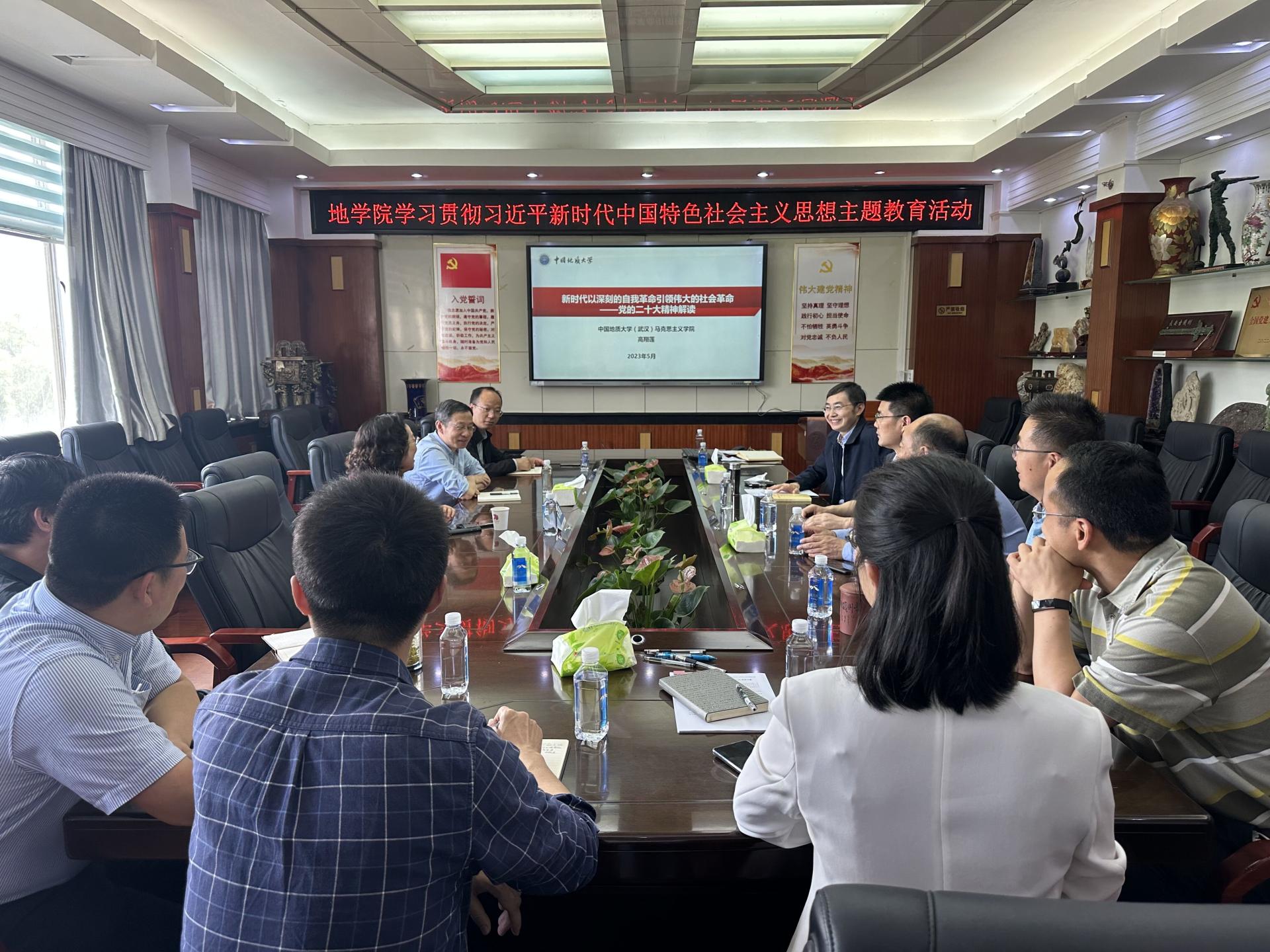 5月24日下午,91短视频 组织开展学习贯彻习近平新时代中国特色社会主义思想主题教育活动,特邀马克思主义91短视频 高翔莲教授讲授以《新时代以深刻的自我革命引领伟大的社会革命》为题的专题党课,对党的二十大精神进行解读,91短视频 二三级班子成员参加党课学习。