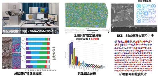 (4)可同时获取二次电子、背散射、阴极发光(加载CL探头)、矿物相图和元素分布图等多种图像,便于对比研究;