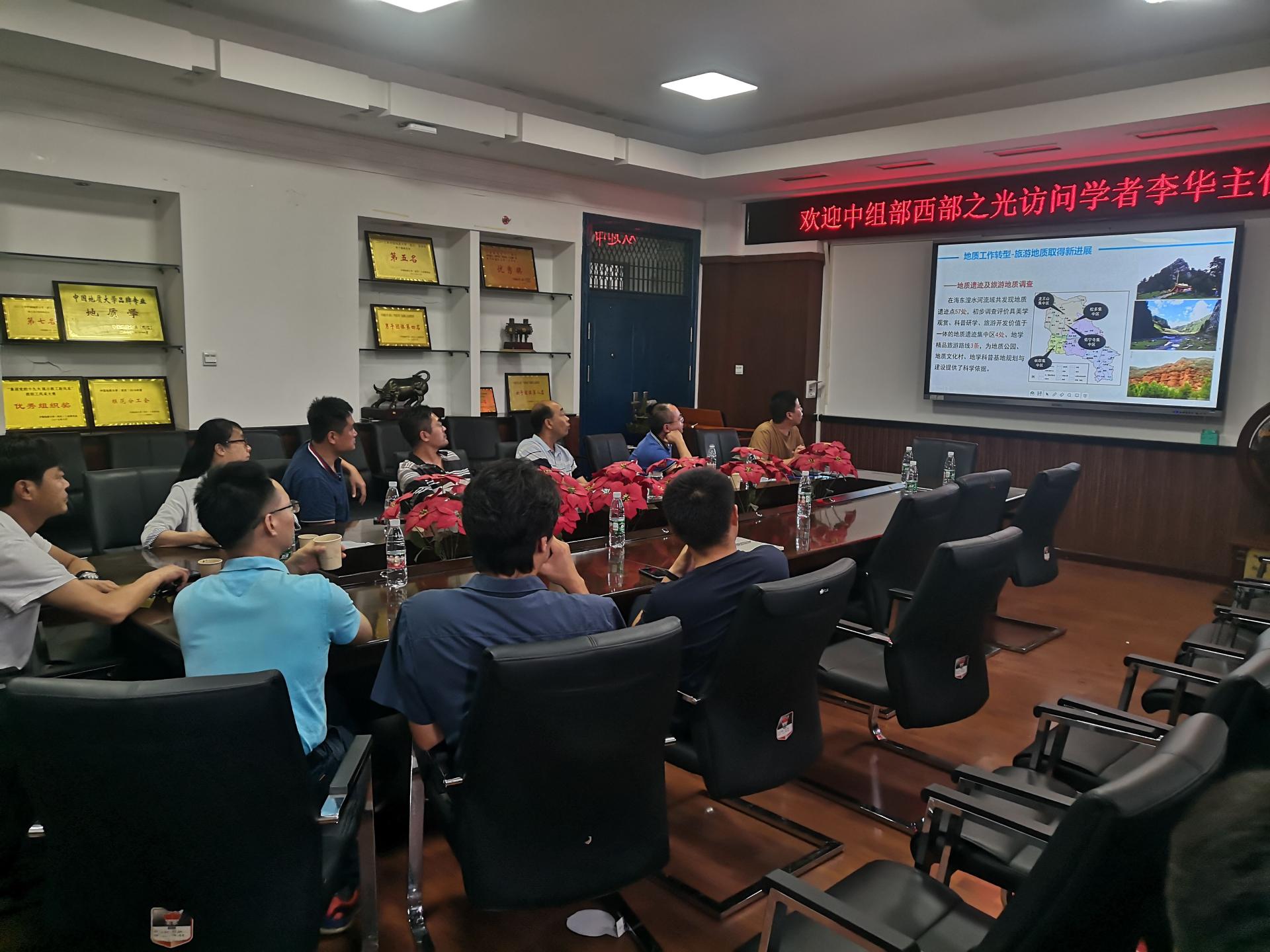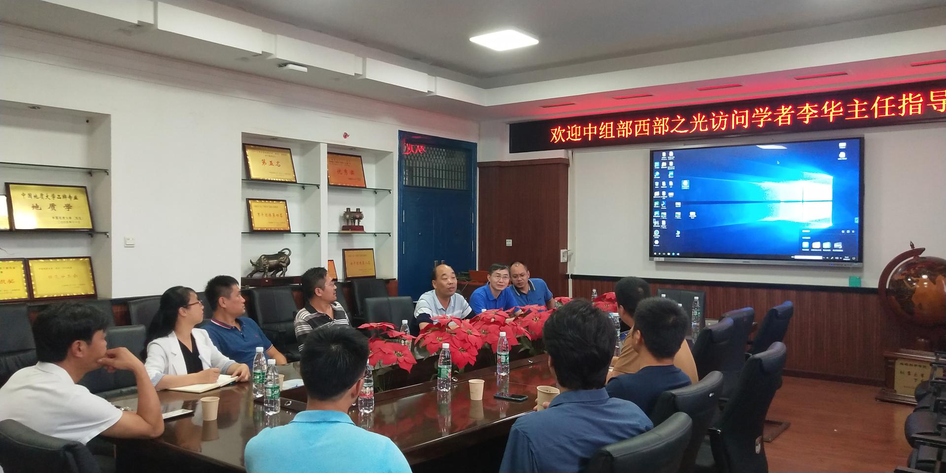 (通讯员 蒋钰鑫 董健彪 王微 摄影 张翼 董健彪)7月3日下午,应91短视频 王信水教授邀请,青海省“西部之光”访问学者、青海省地质调查局资料室主任李华来访91短视频 。91短视频 党委书记周刚、副院长吴元保、地质调查研究院副院长吕占峰及地球化学系汤华云、宗克清、汪在聪、王信水、谢淑云、郭京梁、徐旺春等老师及学生代表与李华主任一起座谈交流。座谈会由吴元保副院长主持。