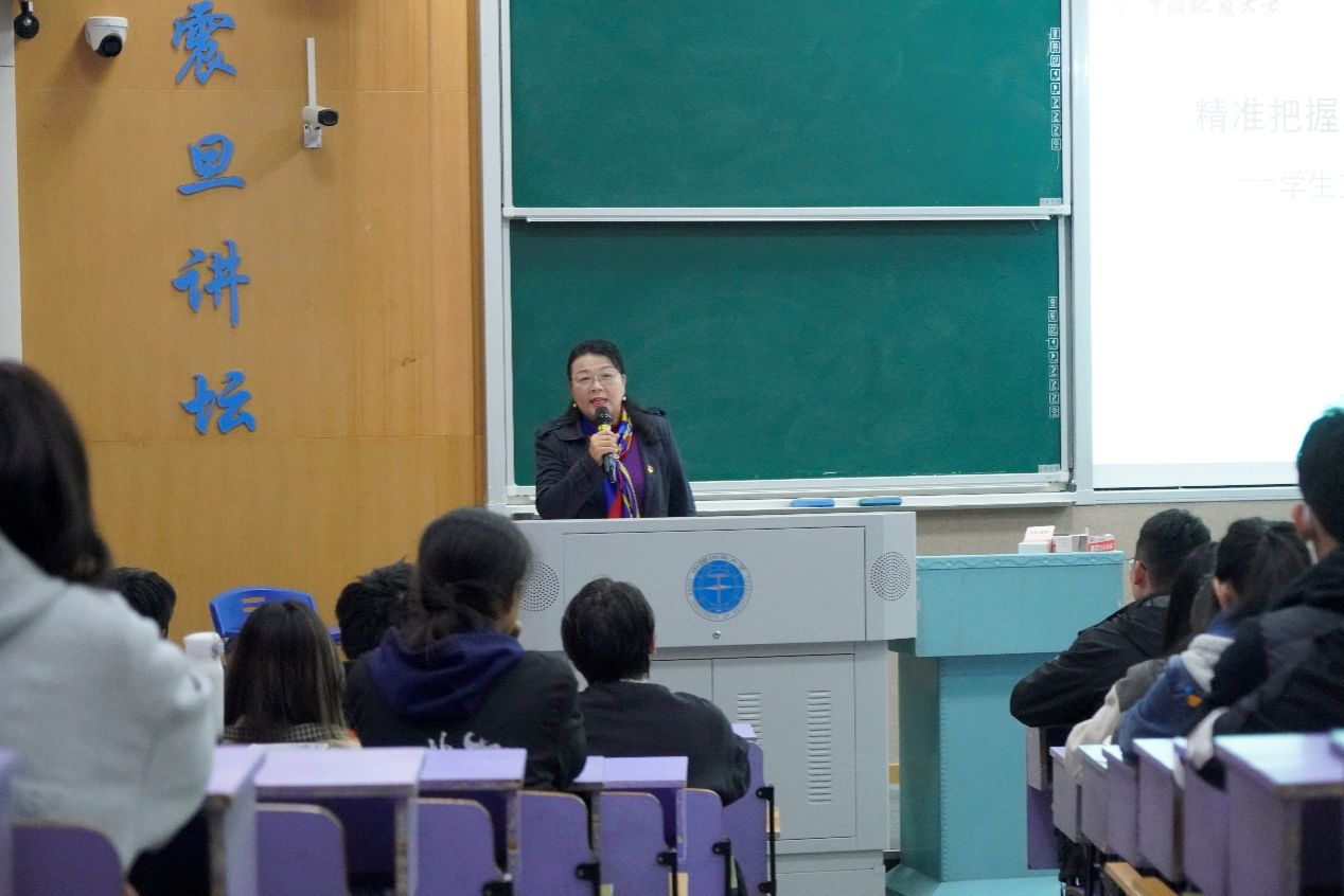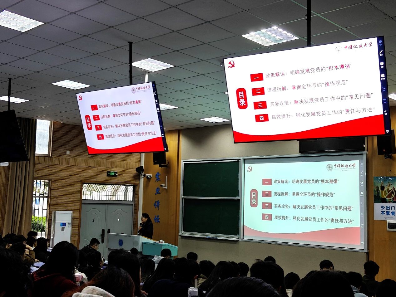 专题培训环节中,于荣萍老师凭借深厚的党建理论素养和丰富的实践经验,围绕发展党员工作展开全方位系统讲解,内容聚焦政策解读、流程拆解、实务攻坚和质效提升四大核心维度。她结合日常工作中整理的常见实务易错点清单、材料审核过程中发现的典型错误案例,分析产生问题的原因,从而明确责任,通过“理论讲解+案例剖析+责任明确”的模式,为参训人员提供了有针对性、可操作的实践指南。她的辅导内容既有理论高度,又紧密贴合学生党支部工作实际,兼具较强的针对性、指导性和操作性强,为参训人员规范、高效开展党务工作提供了清晰指引和有力支撑,帮助大家进一步厘清工作思路、规避常见误区、掌握科学方法。