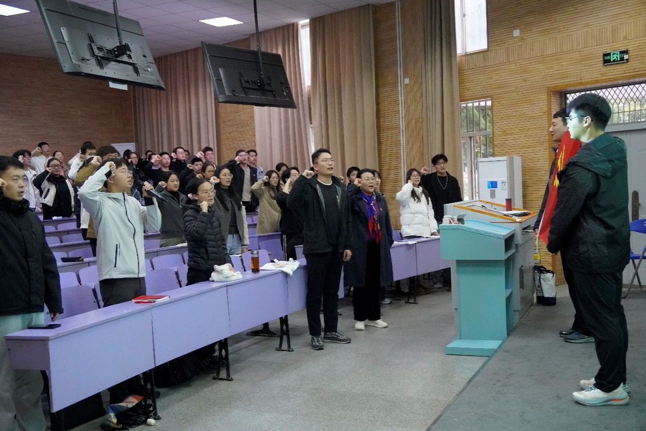 活动伊始,辅导员彭友元带领全体参训党员面向党旗,庄严宣誓,重温入党誓词。部分党建办入党积极分子在旁认真观摩,聆听学习,铿锵有力的誓言在会场内久久回荡,这一庄重仪式不仅强化了参训党员的身份意识与责任担当,更让入党积极分子深受感染和感召,进一步坚定了其向党组织靠拢的信念,激发了全体参训人员不忘初心、牢记使命,扎实做好党务工作的前行动力。