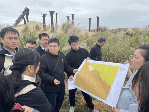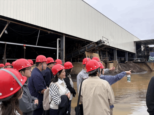 在废弃的锆钛矿采矿厂现场,地质局专家系统讲解了滨海沙锆钛矿的空间分布规律和成矿机理。随后,师生共同前往文昌海拓矿业有限公司。在企业车间机器轰鸣的环境中,“导学共建”呈现出全新的实践形态。面对复杂的重选、磁选与电选联合工艺流程,教师不再掌握“标准答案”,而是与学生处于同一学习起点,共同向企业技术专家请教。公司负责人系统介绍了生产流程,技术人员现场解析设备工作原理,师生们全程观摩浑浊矿浆如何通过多道工序逐步分离出高纯度的锆英砂与钛铁矿。